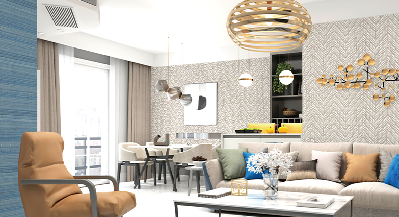 獨(dú)特設(shè)計(jì)元素,通過(guò)精細(xì)復(fù)合制作工藝,使墻面呈現(xiàn)出金箔、復(fù)合絲、粒子、草編、紙編、絨面等無(wú)與倫比的裝飾效果。