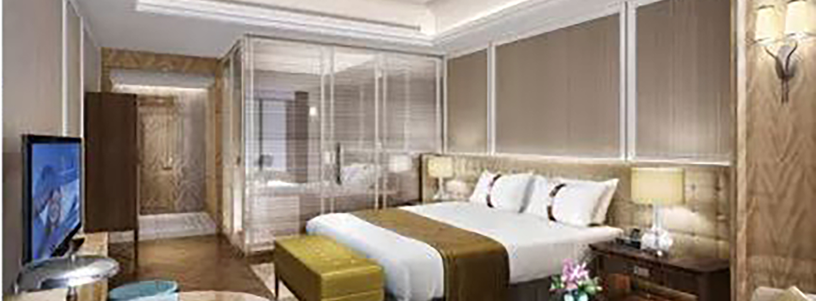 蠶絲紋——kf12系列,仿蠶絲織面紋理,運用斜雨紋點綴,簡約中素雅相伴,低調中顯露奢華。 合肥朗廷酒店的室內空間由美國Bilkey Llinas Design(BLD)打造,現(xiàn)代感與古典英倫風格兼容并蓄,彰顯出朗廷作為歐洲頂尖豪華酒店歷久彌新的優(yōu)雅與文化傳承。客房使用kf12系列仿蠶絲膠面墻布,壓平的蠶絲表面不經(jīng)意流露壓褶的痕跡,優(yōu)雅而含蓄,與酒店裝飾風格遙相呼應。